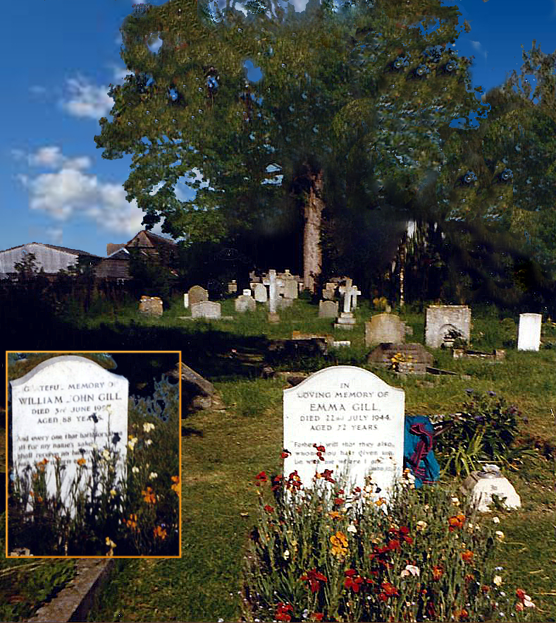 Tombstone of Willie and Emma Gill in St. James Church graveyard, West Hanney, Oxfordshire, England.