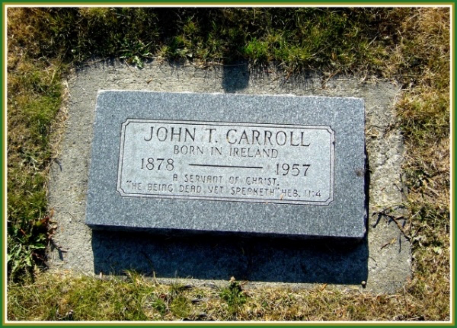 Tombstone reads: "John T. Carroll - Born in Ireland - 1878-1957