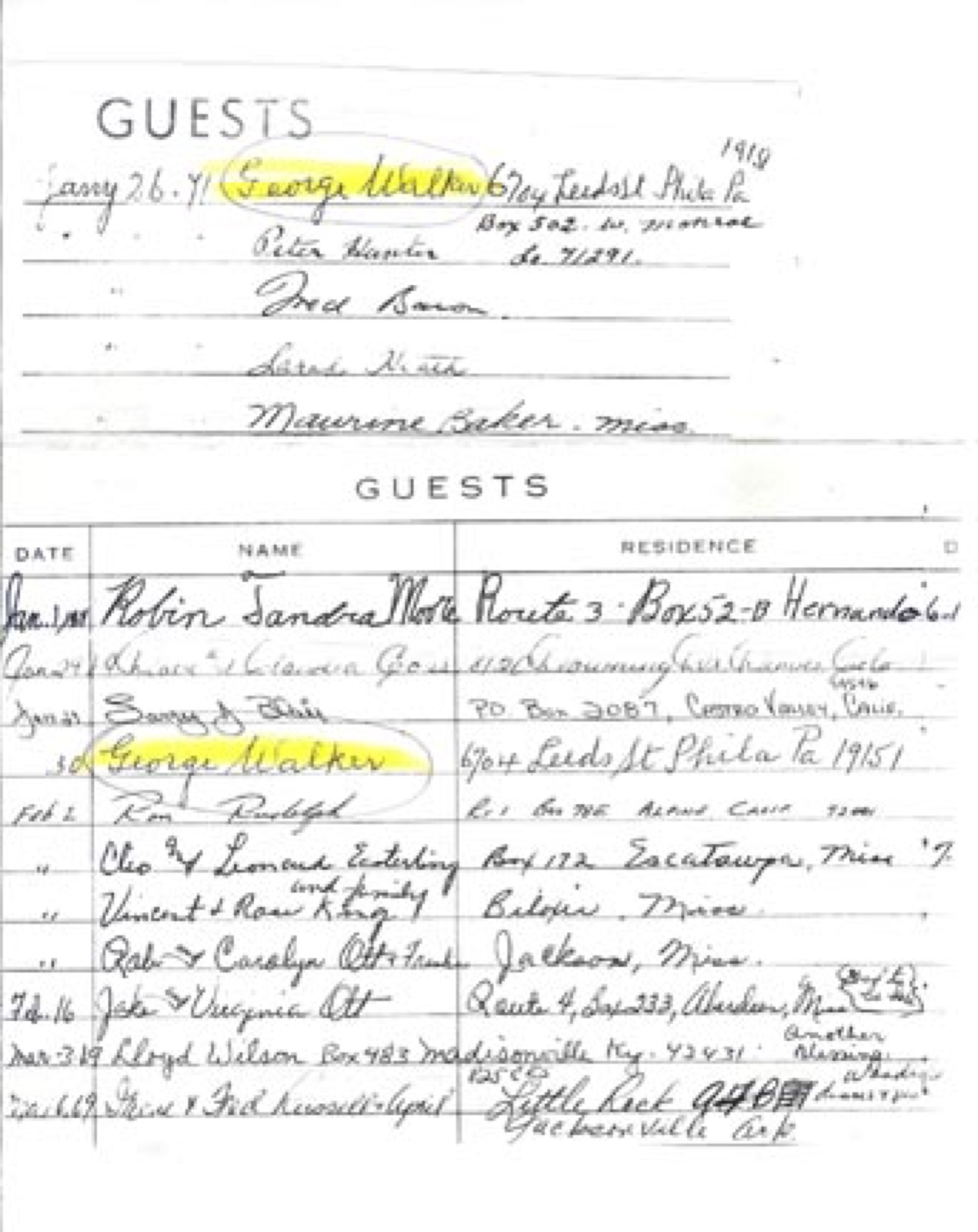 Guestbook of R. & D. Berry of Jackson Mississippi Convention grounds.