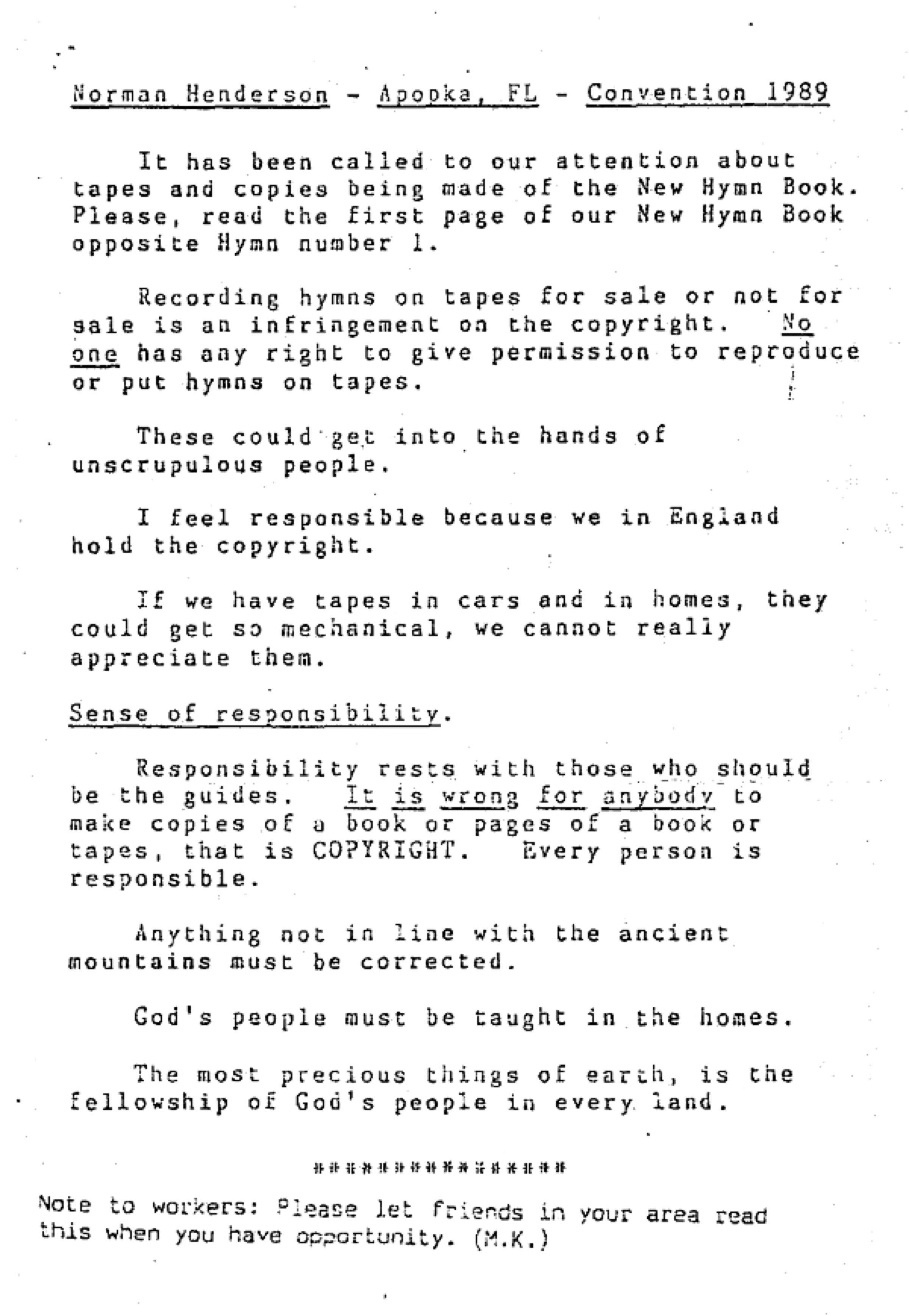 Letter from Ben Crompton, Barry Barkley and Dale Shultz warning of violations of copyright.