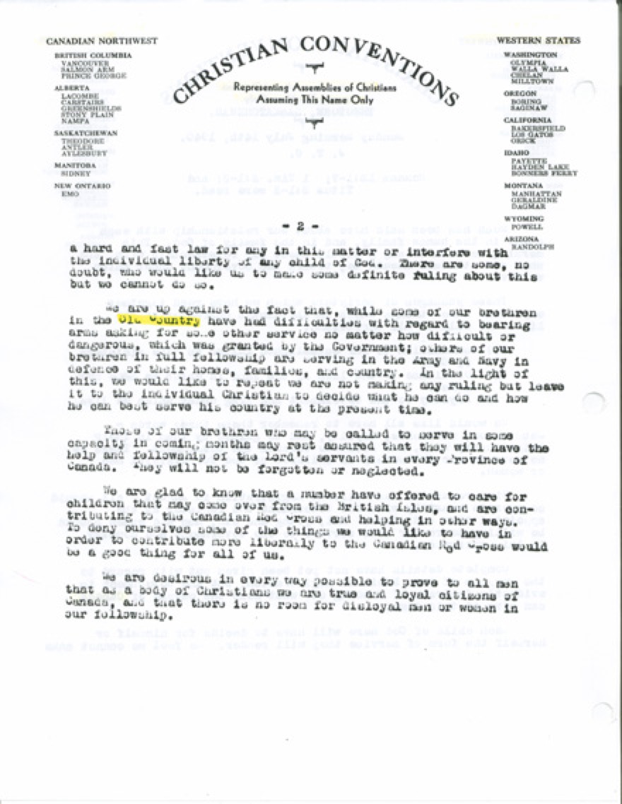A continuation of Jack Carroll's statement on Christian Convention stationary concerning World War II.