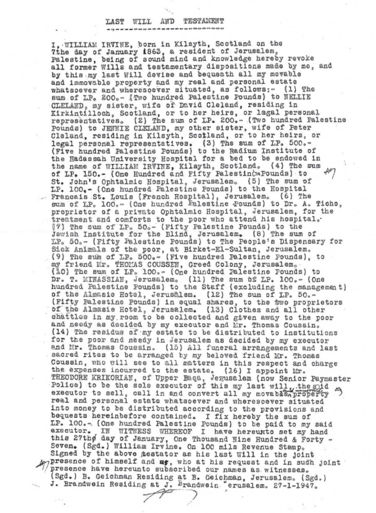 William Irvine's Last Will & Testament signed Jan. 27, 1947.