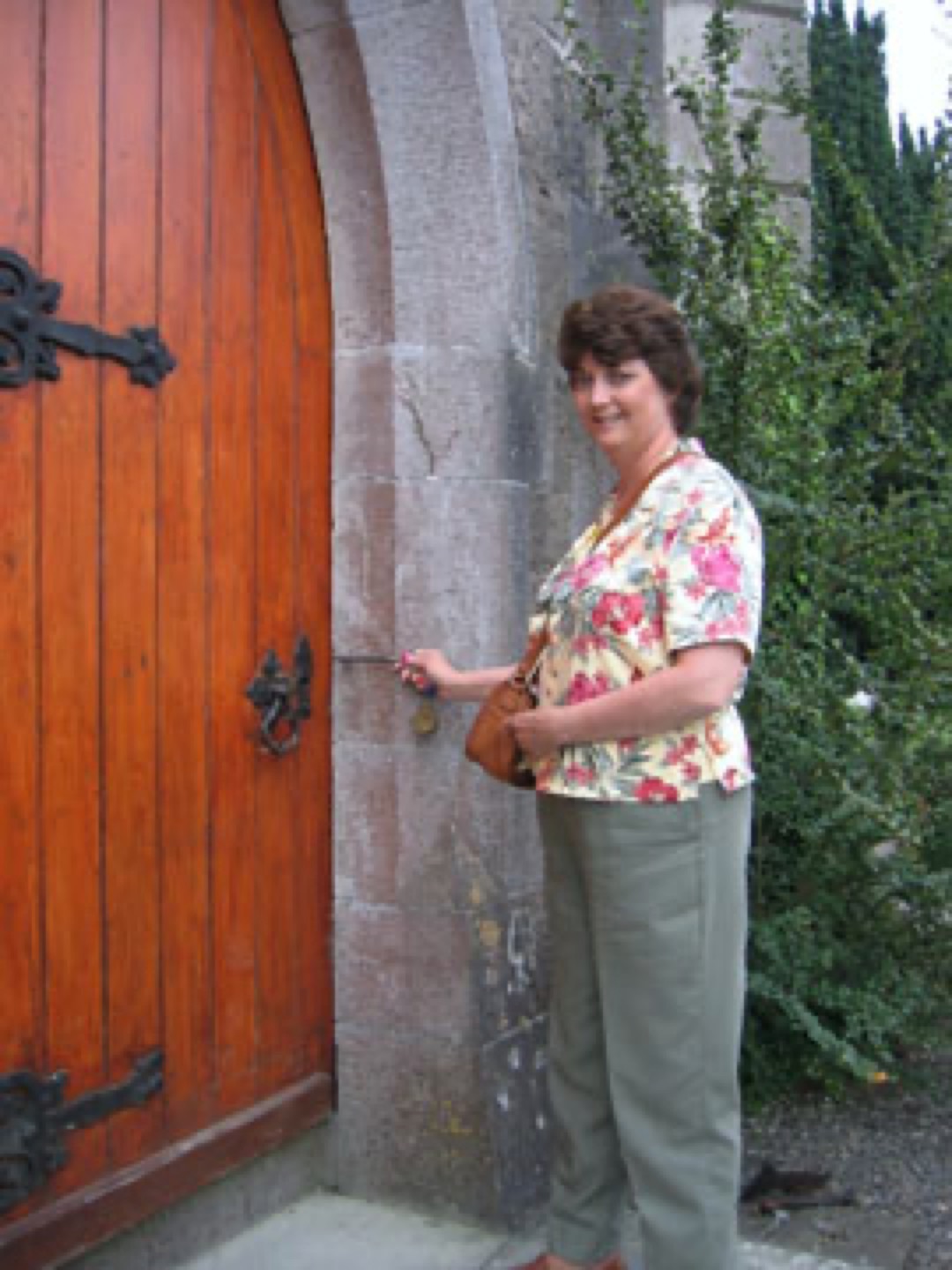 Cherie Kropp at the entrance of the Church of Ireland