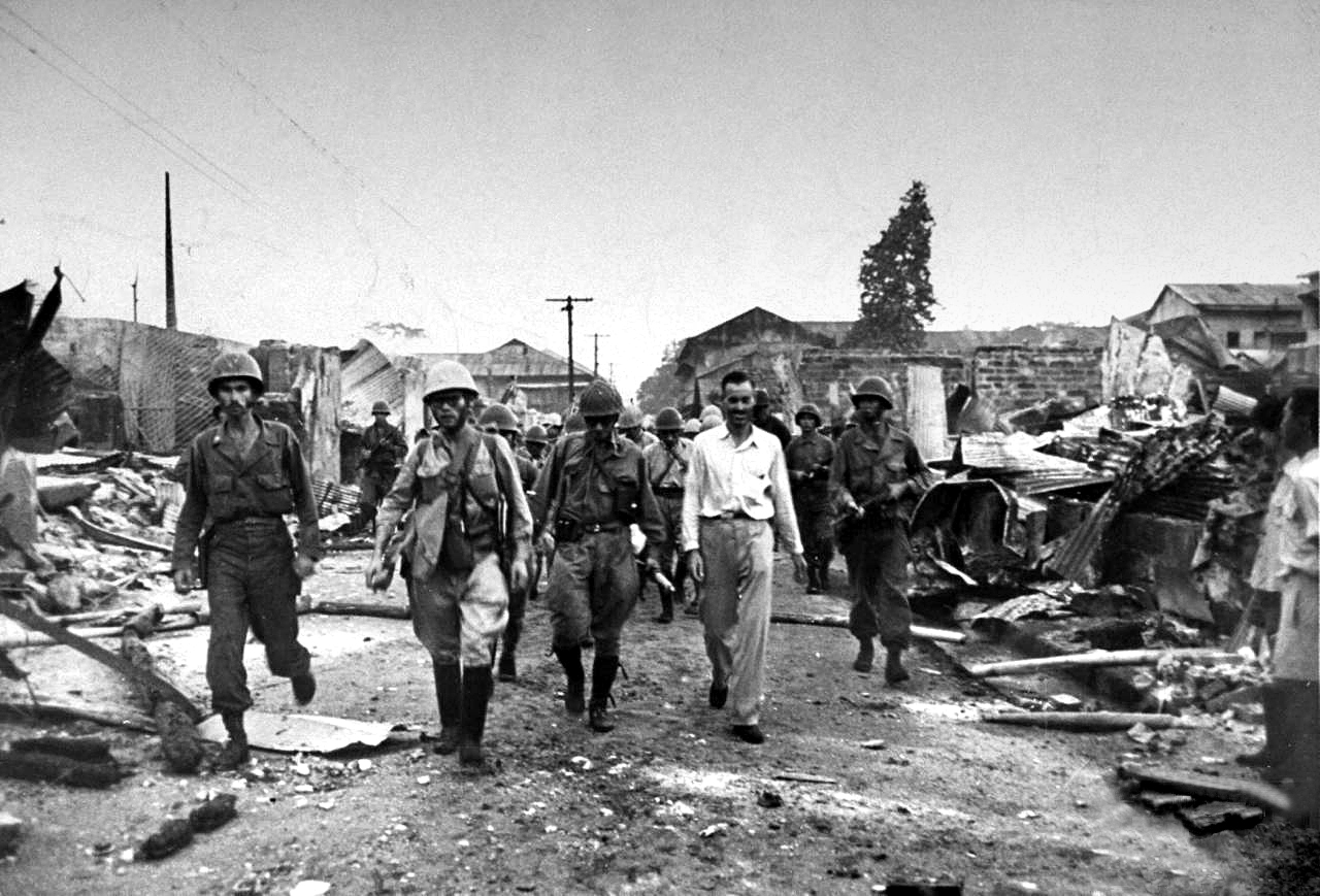 Another photo of Ernest Stanley leading Japanese across Manila.