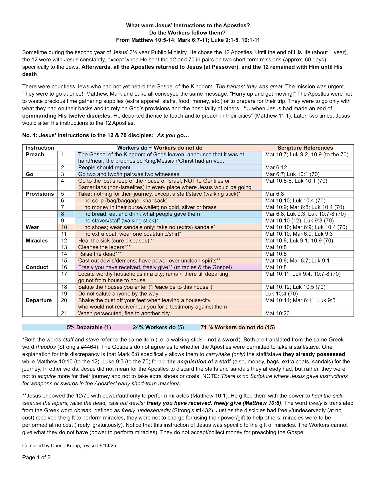 Study of Jesus' Instructions to the in Matthew 10 Instruction to the Apostles (page 1 of 2).