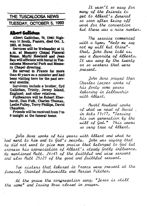 Obituary of Albert Gallichan, Overseer of France