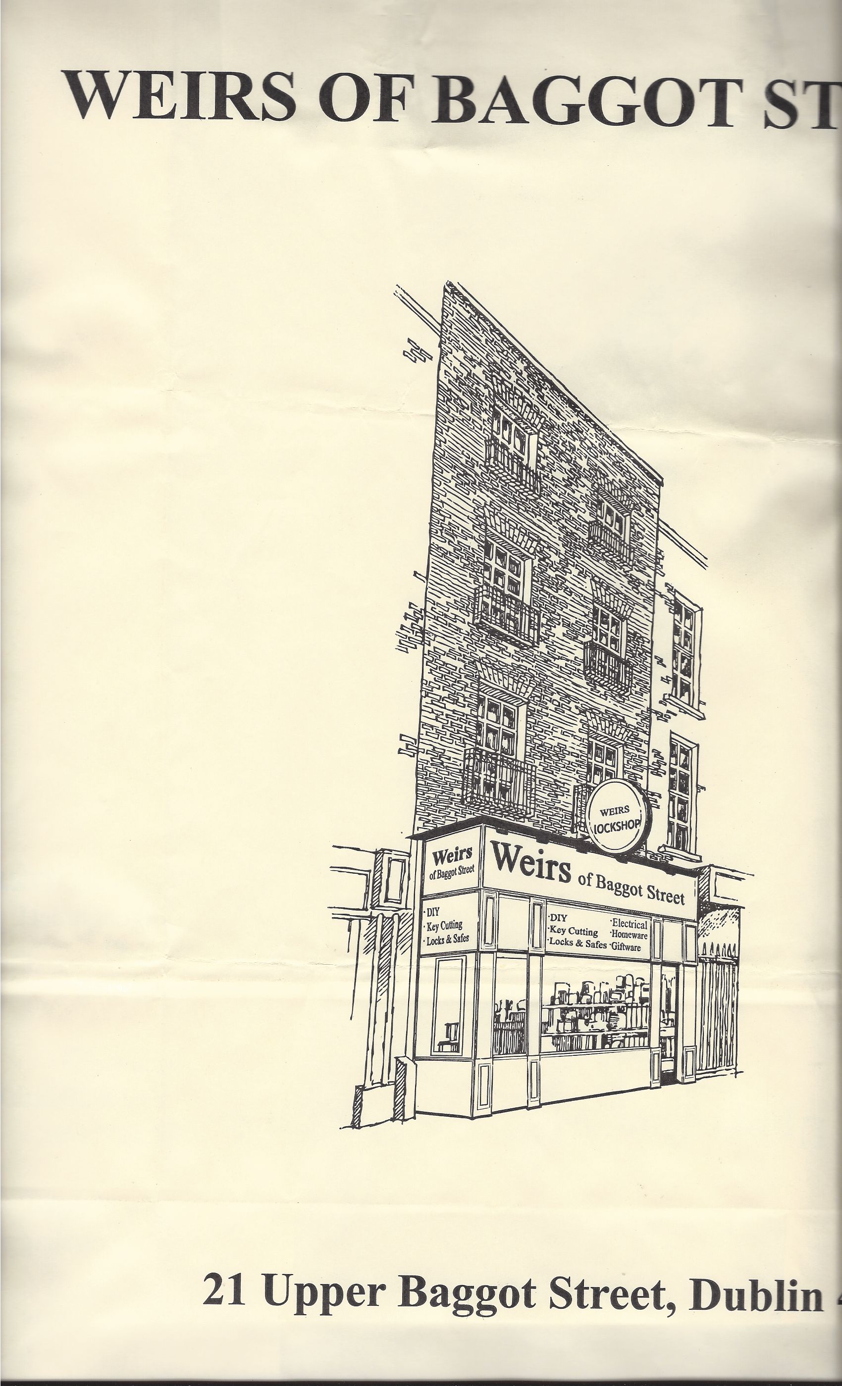 Front of a shopping bag from Weirs Store at Baggot Street