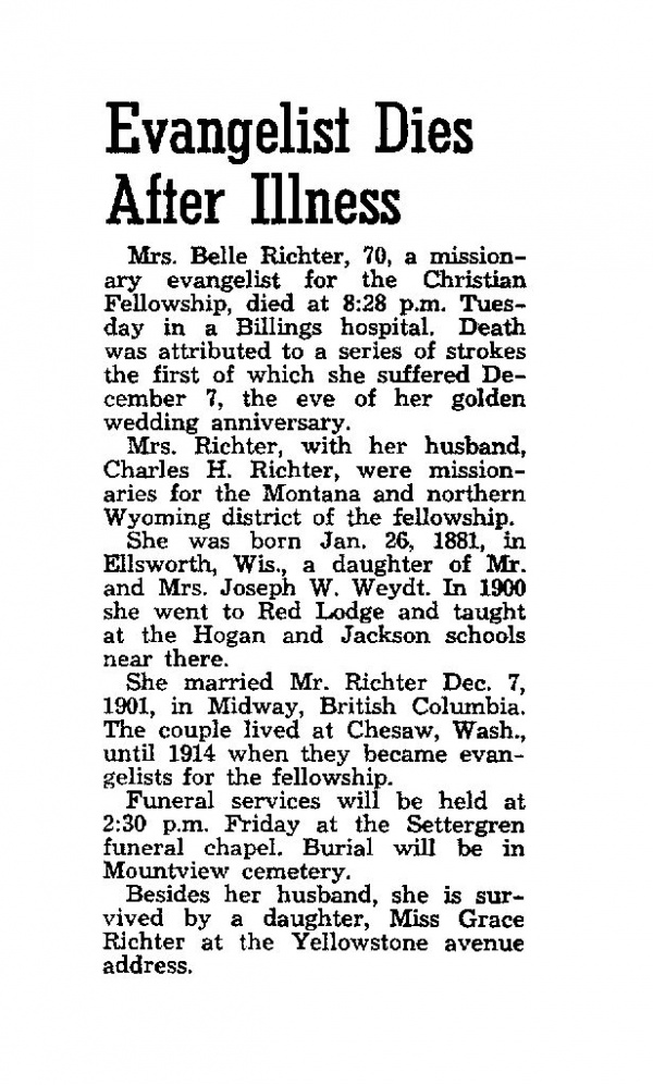 -- of Belle Richter, wife of Charles Richter;