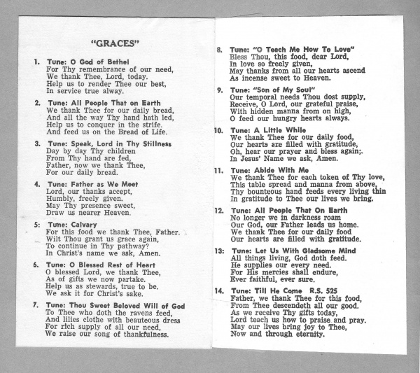 offering thanks to God which were sung before meals.