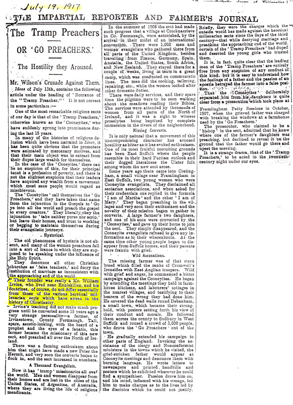 Their founder was really a Mr. William Irvine, who lived near Enniskillen,
