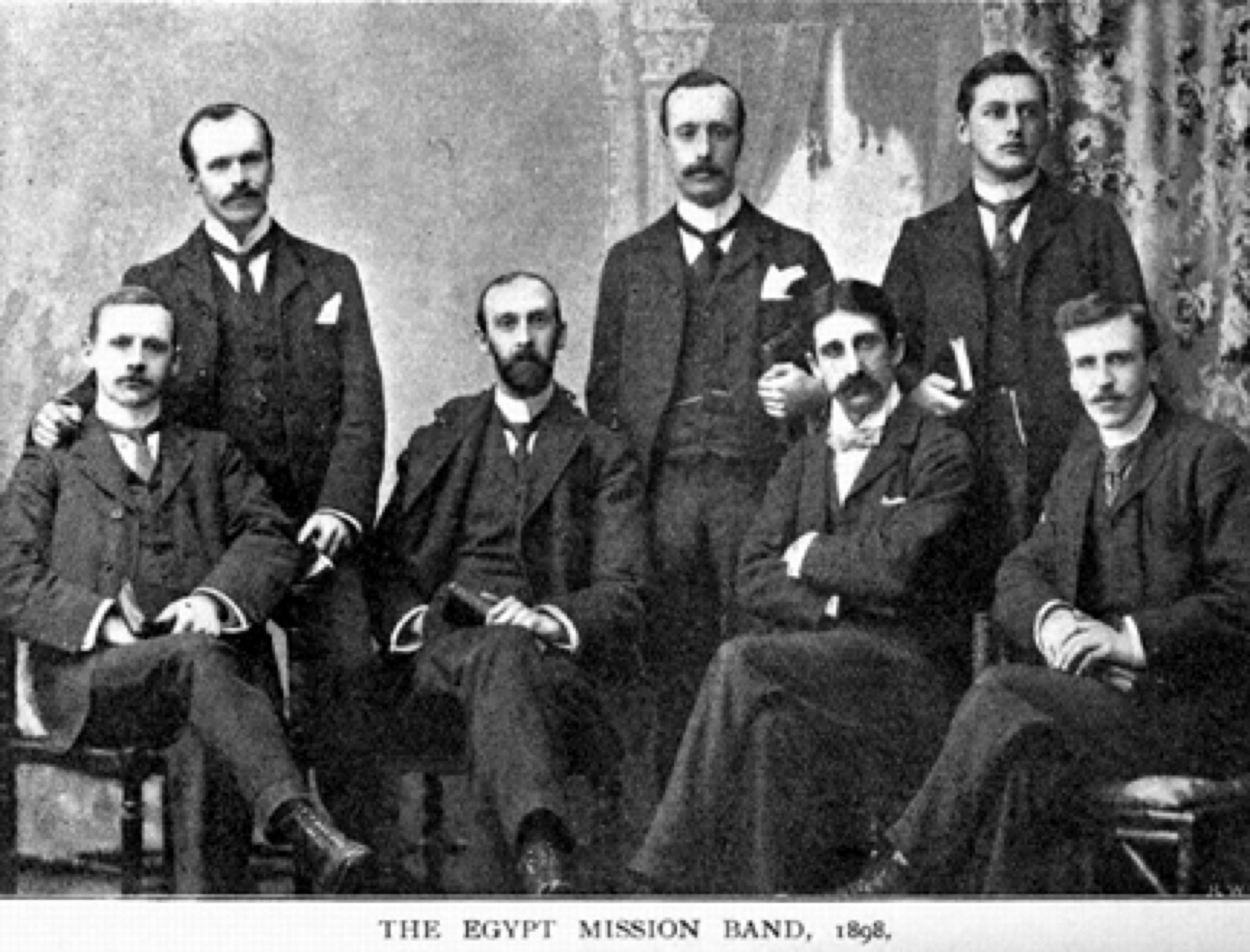 Fred Cooney first man on back row, member of the Egypt Mission Band - 1898.