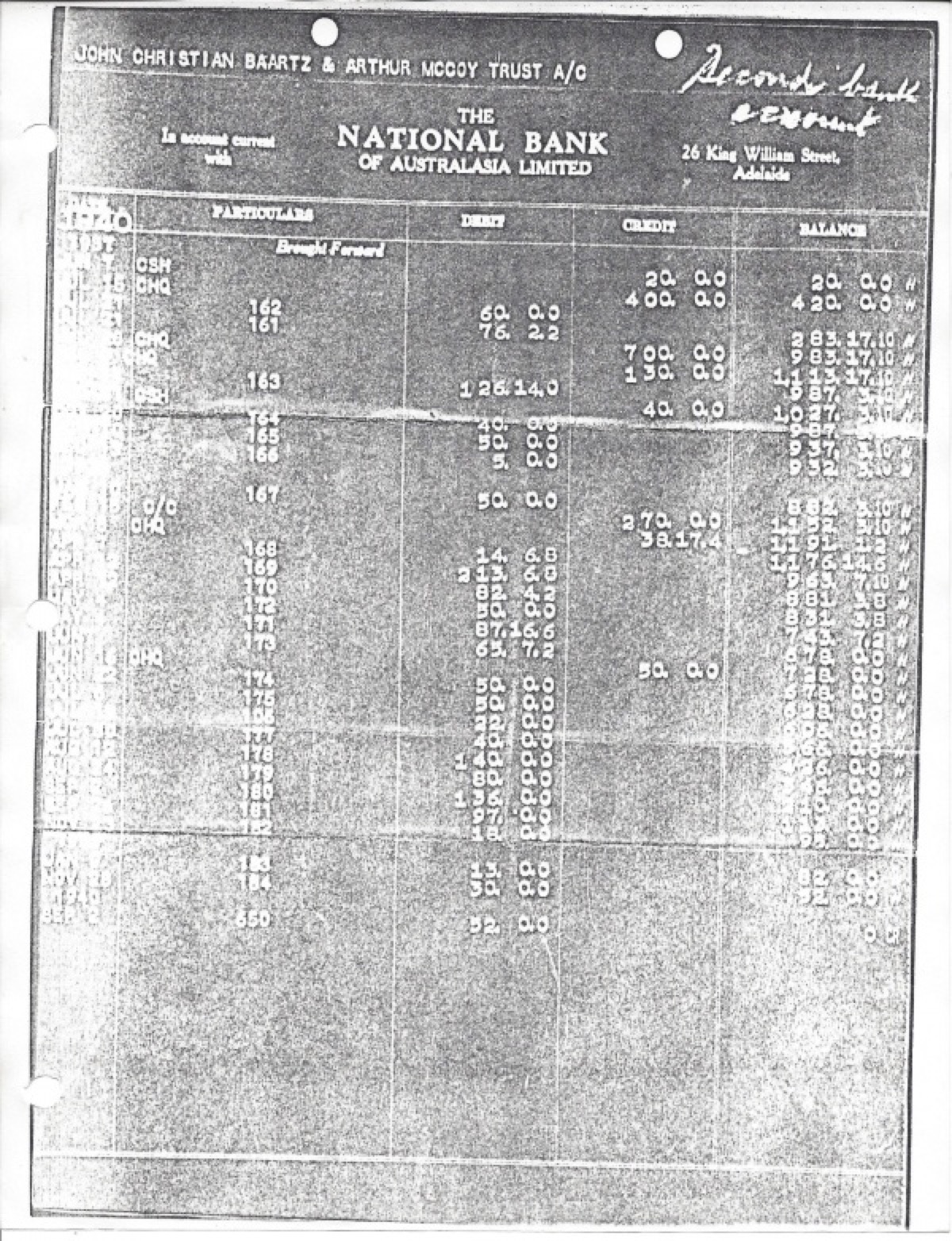 Baartz and McCoy Bank Account Records