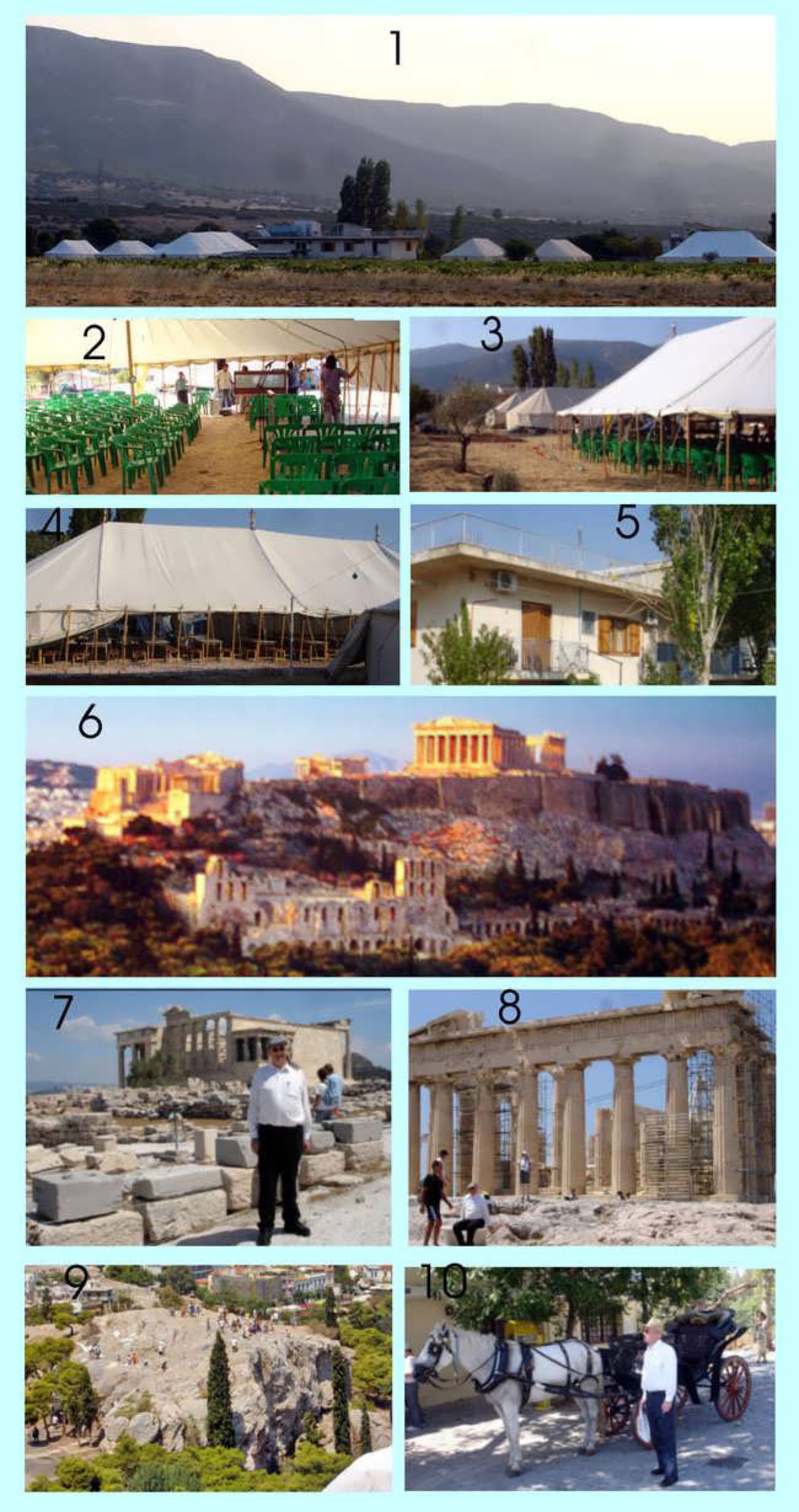 Pictures: 1. Inoi grounds - left to right: two tents for ladies' sleeping, Dining tent, Main house, two tents for men's sleeping, Meeting tent.