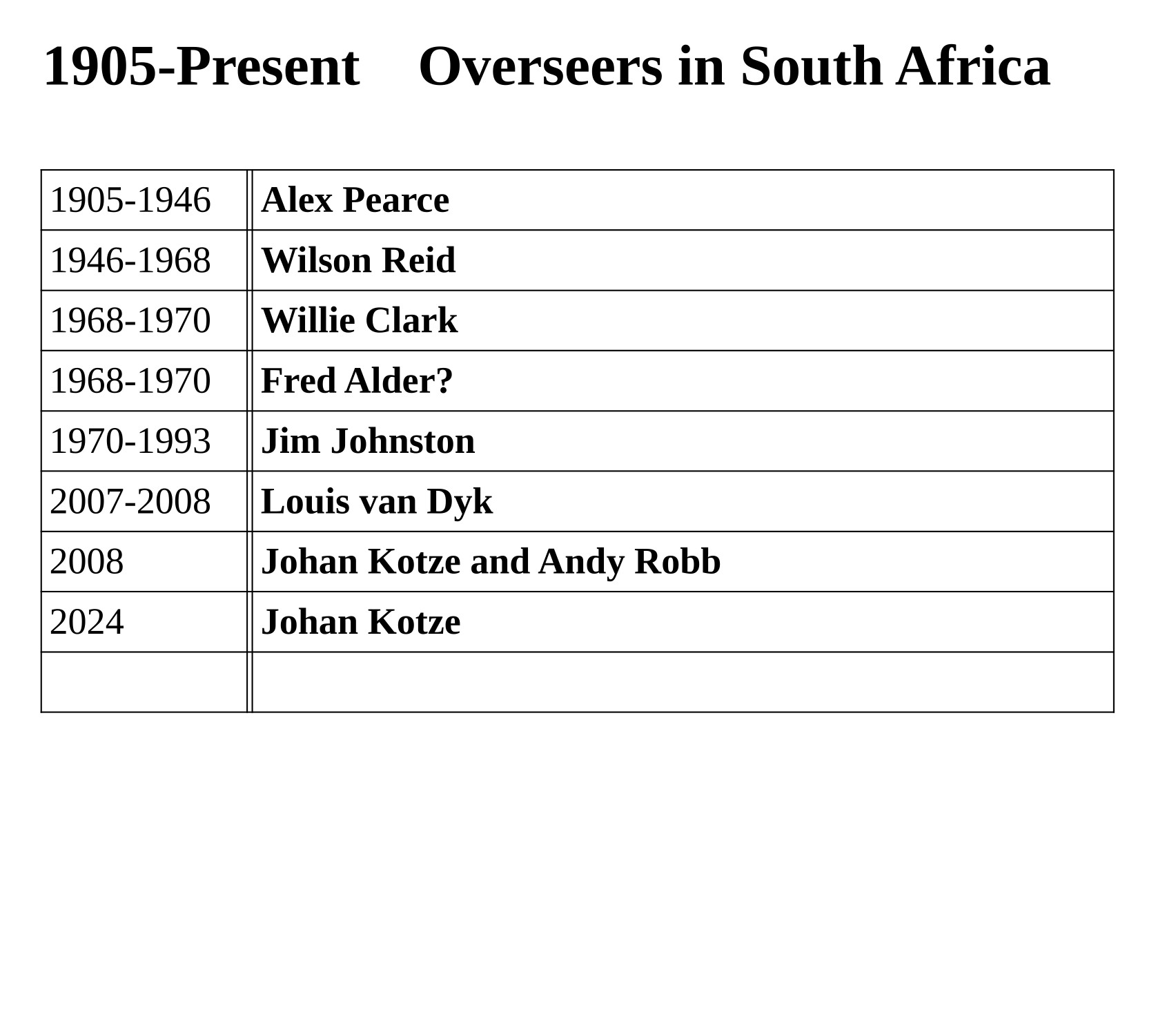 South Africa Overseers