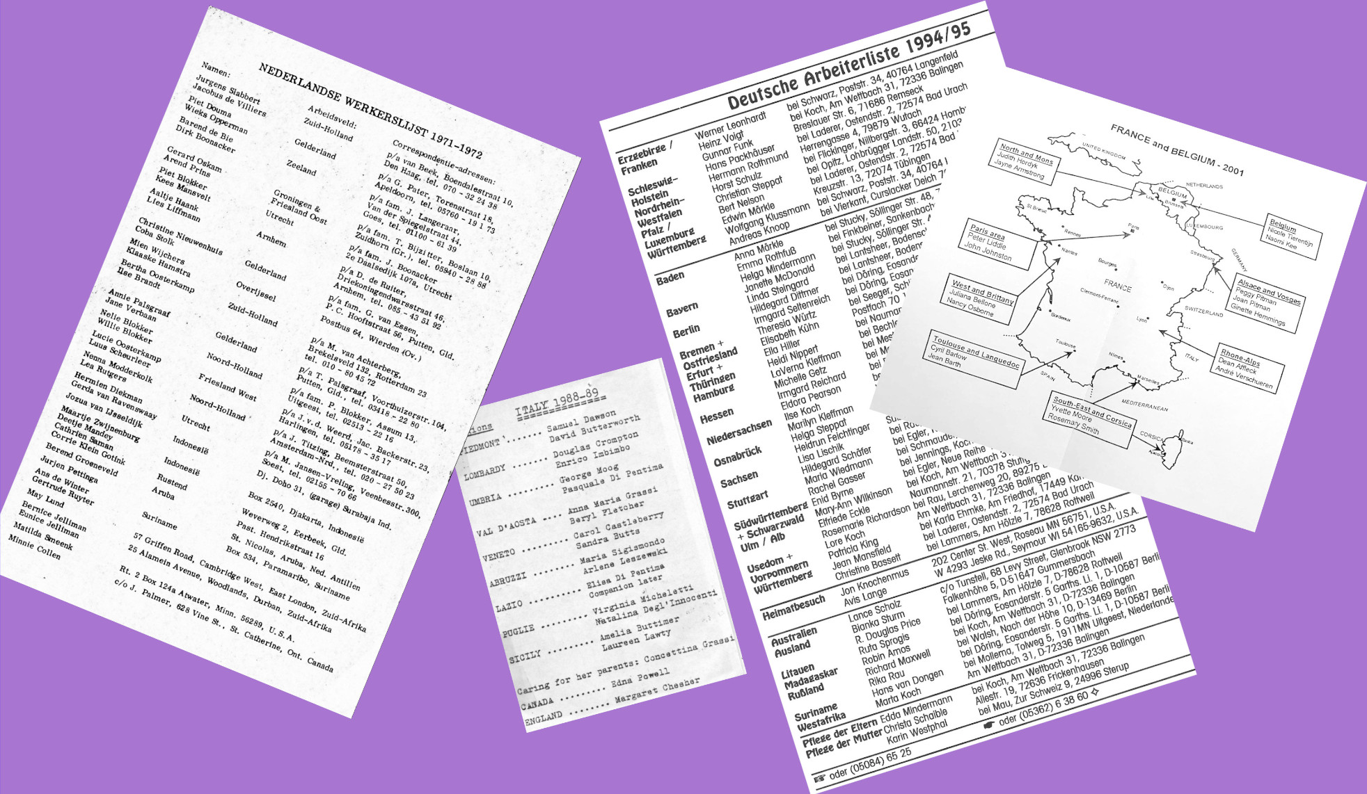 Home / Memory Lane -. Lists, Famiiar Scenes, Attire / Workers Lists and Invitations - 4 albums / Workers Lists — Samples from each Continent -18 photos /