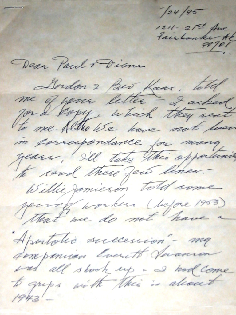 Bob Ingram Letter re Apostolic Succession