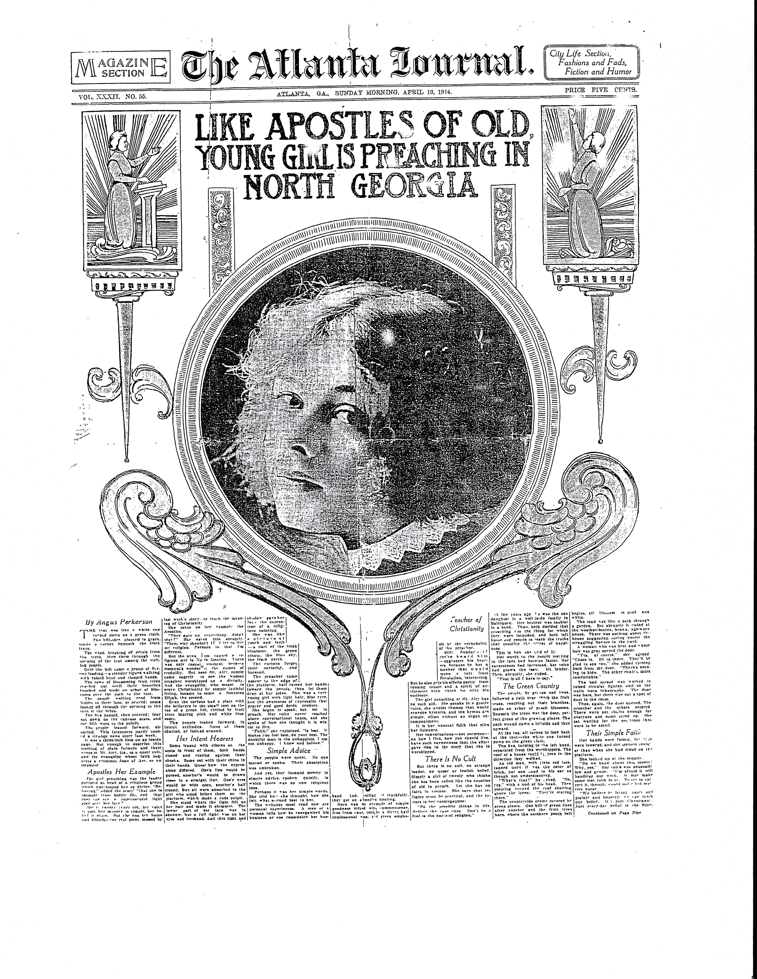 The Atlanta Journal Newspaper article dated April 19, 1914 about sister worker Ida Hawkins. (Atlanta, Georgia, USA)
