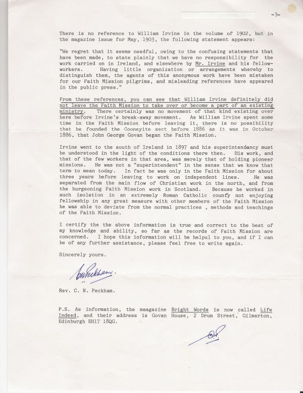 Page 3 - Letter dated May 29, 1991 from Rev. C. N. Peckham,