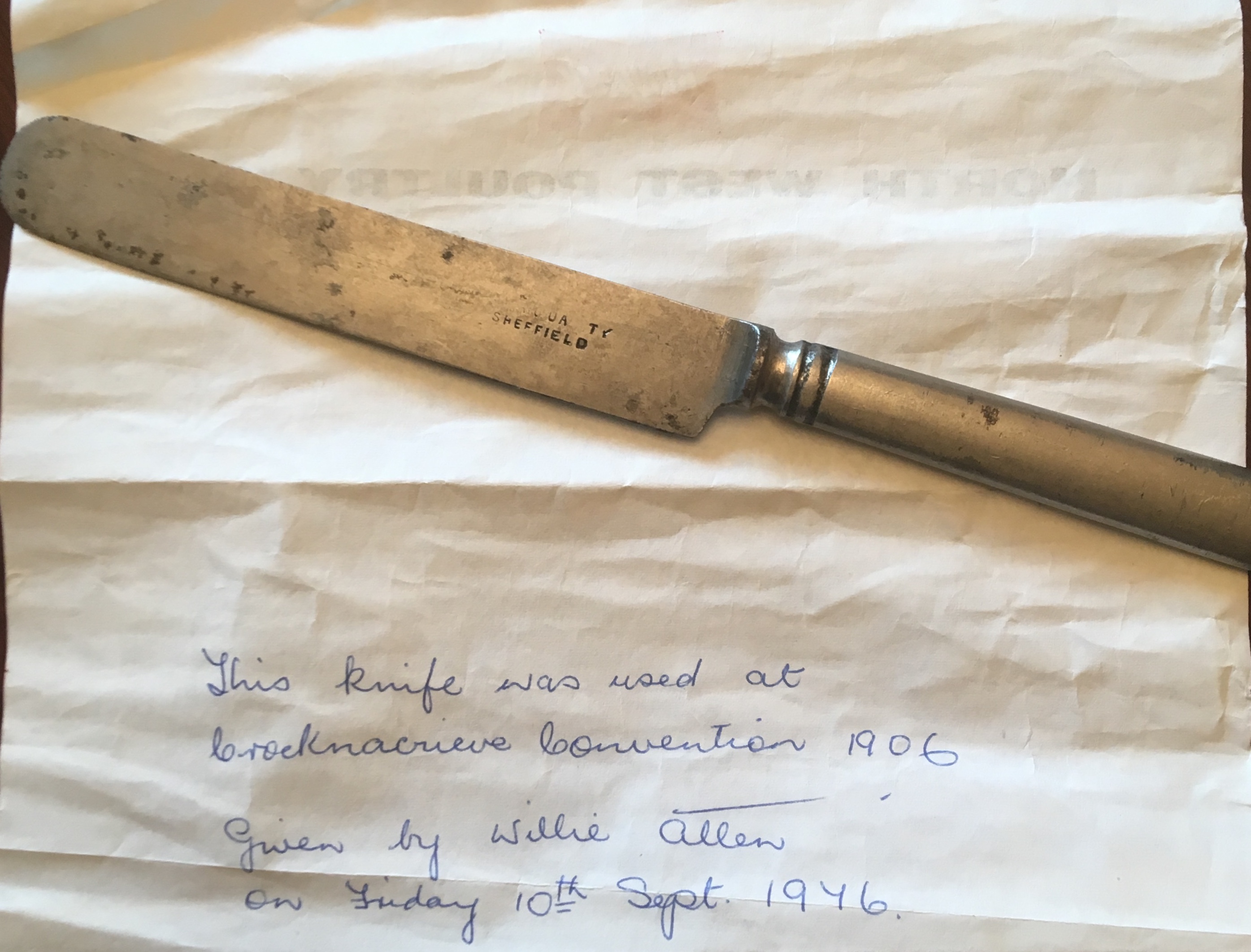 Knife used in 1906 Crocknacrieve Convention.