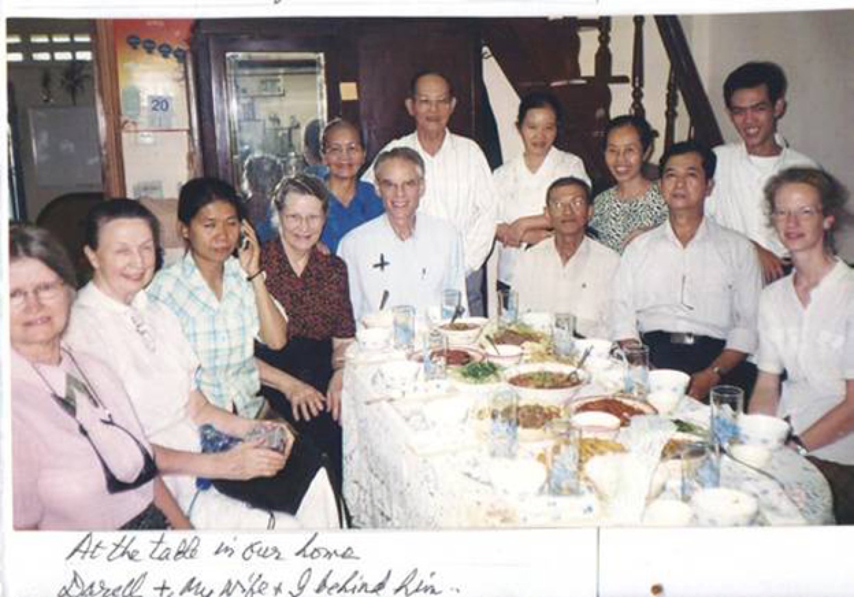 Darrel Turner, overseer, at end of table; Mr. & Mrs. Bau standing behind him (1st couple to profess).