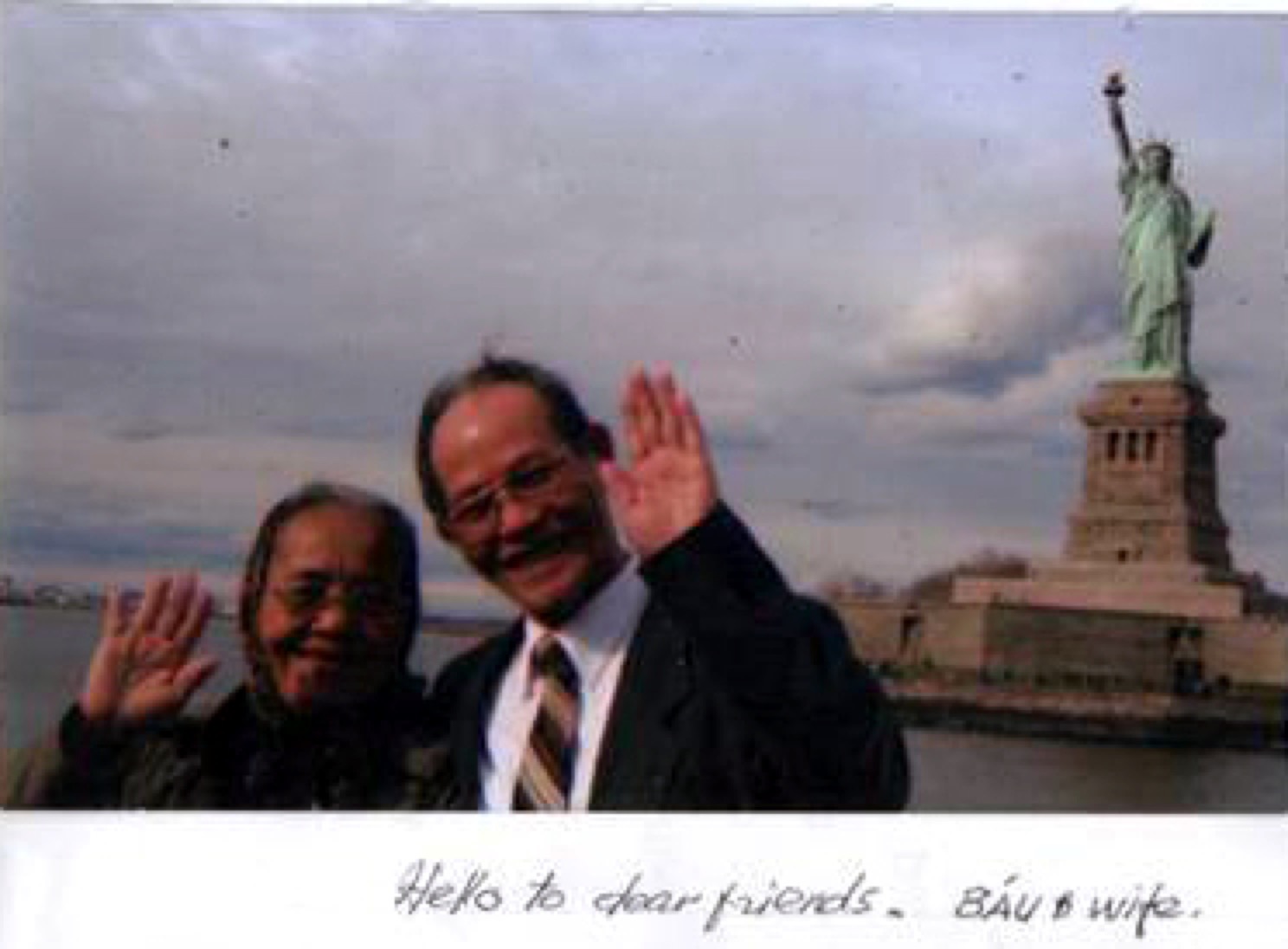Mr. & Mrs. Nguyen Bau in America w/Statue of Liberty in New York