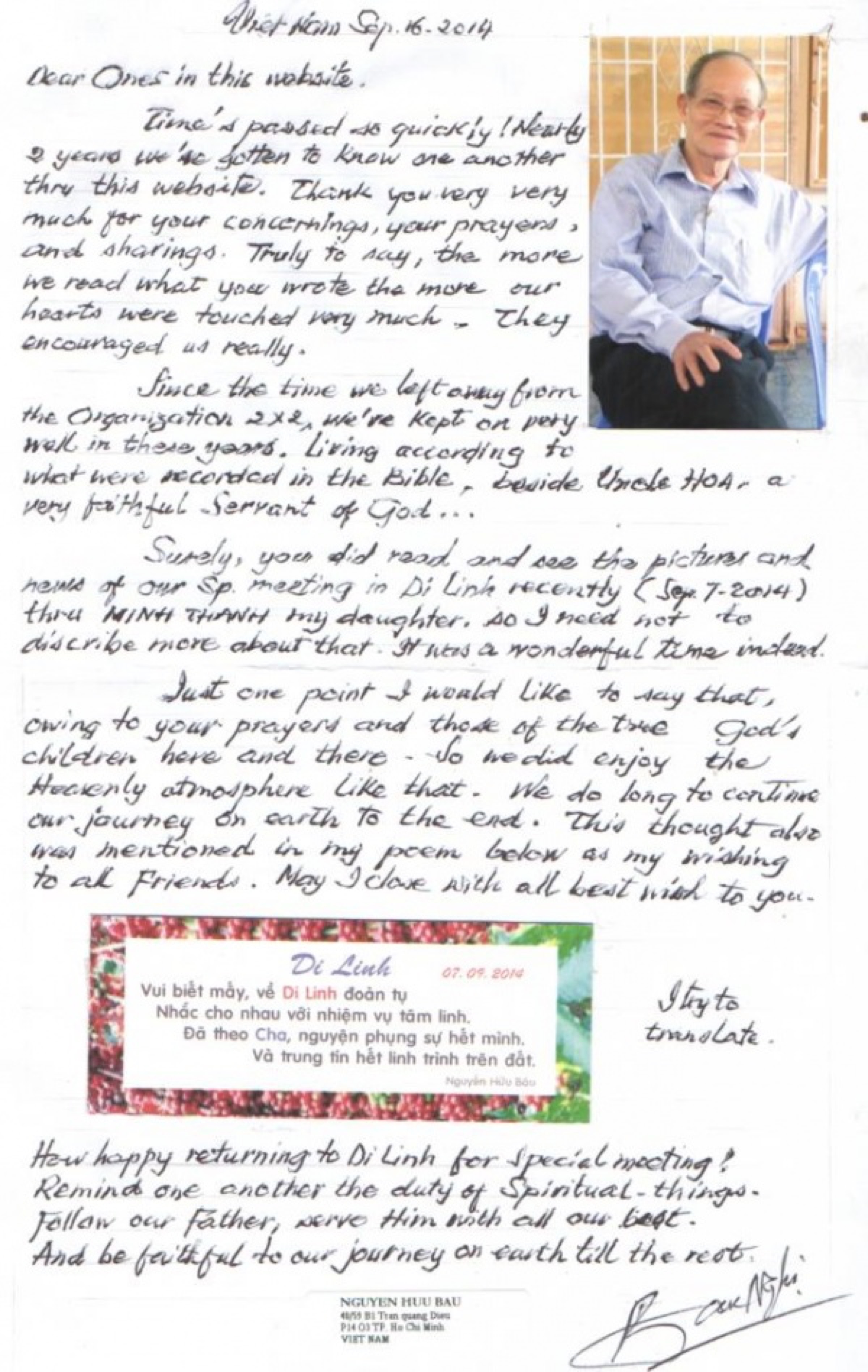 September 17, 2014 Letter from Mr. Nguyen Bau