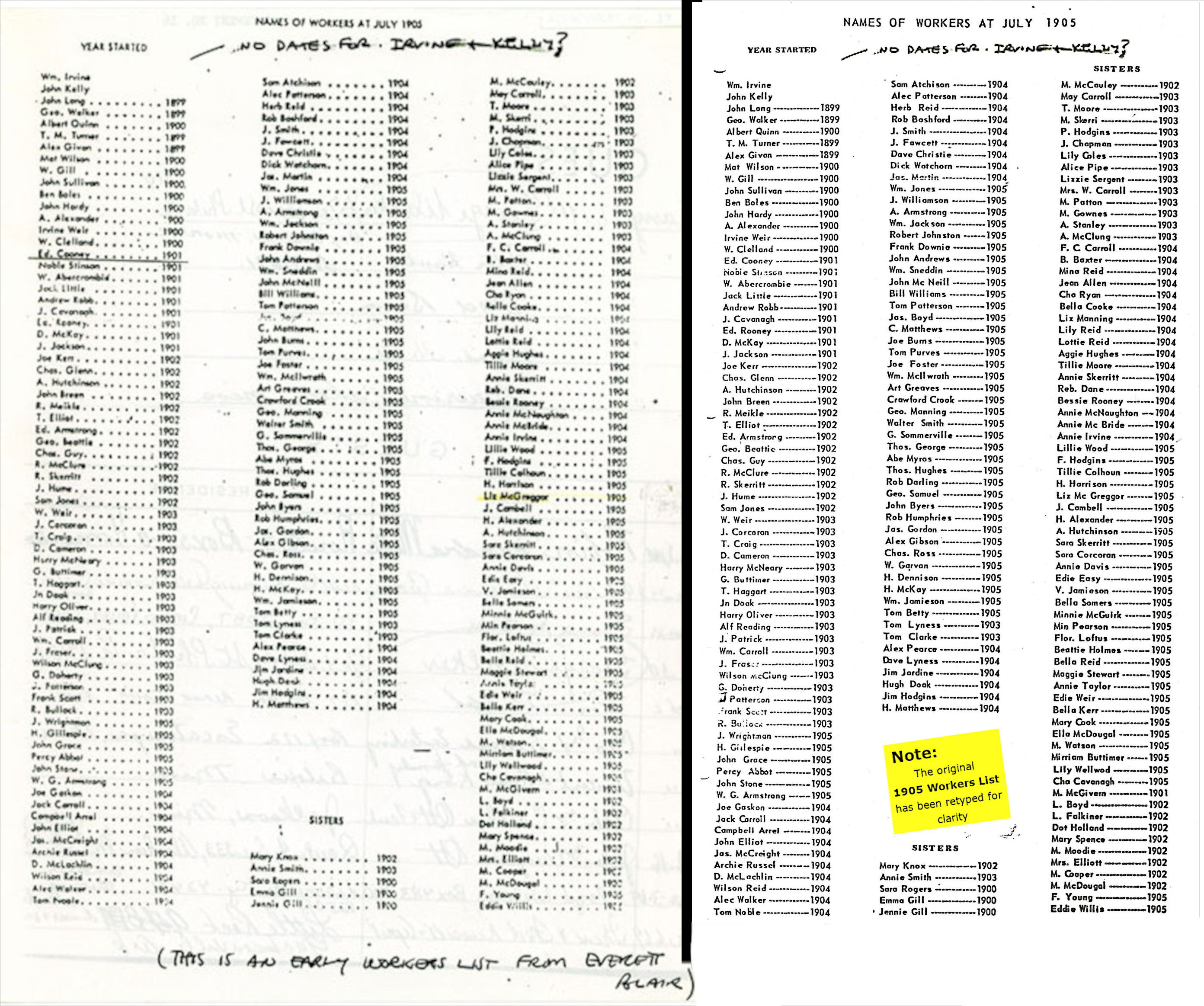 Here is the original list and a re-typed '1905 Workers List'