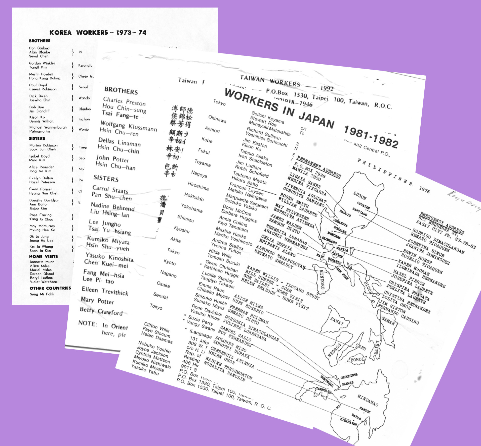 Home / Memory Lane -. Lists, Famiiar Scenes, Attire / Workers Lists and Invitations - 4 albums / Workers Lists — Samples from each Continent -18 photos /
