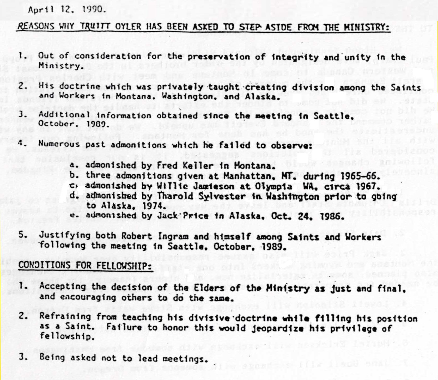 Reasons for asking Truitt Oyler to step away