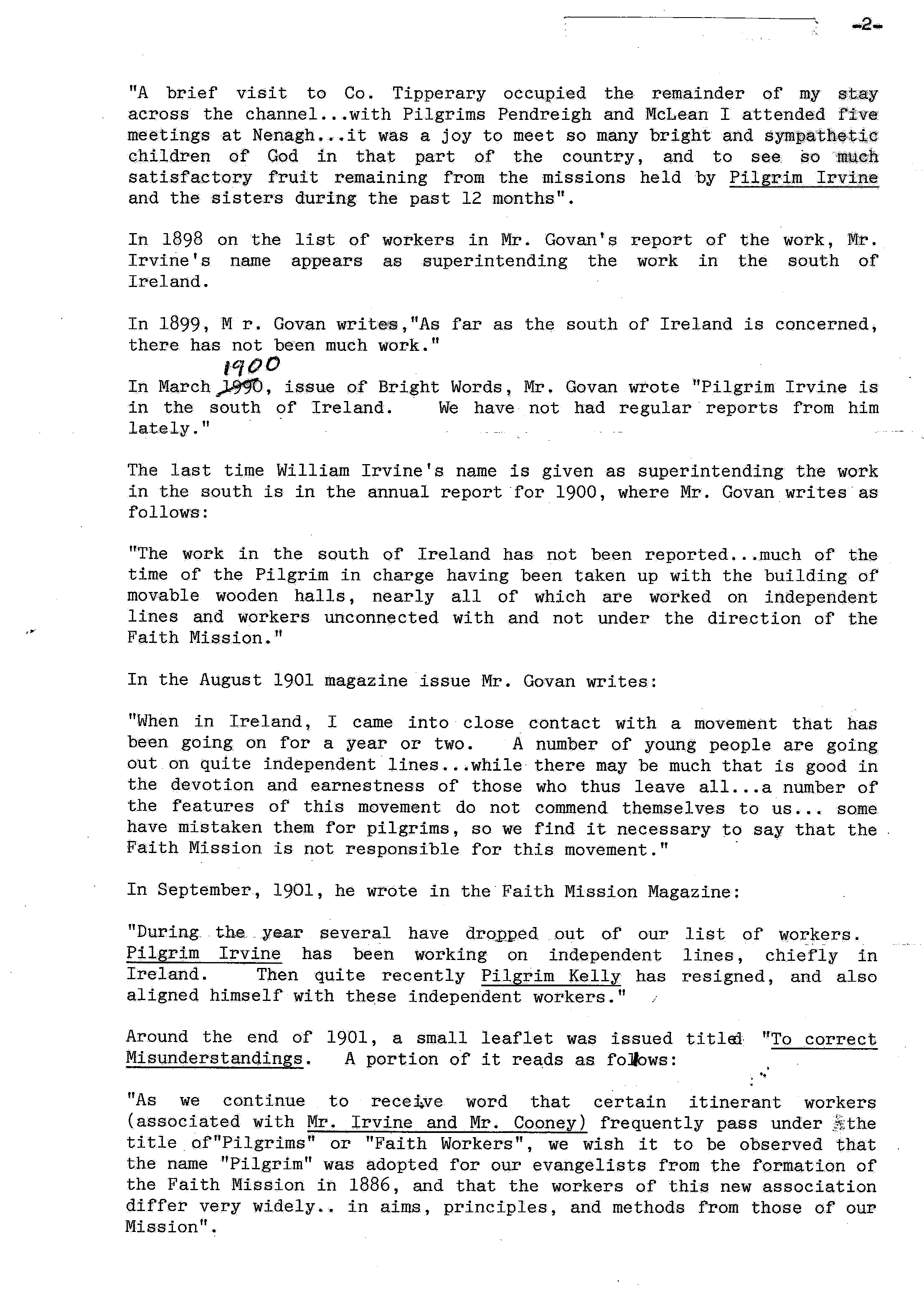 his activity with the Faith Mission.