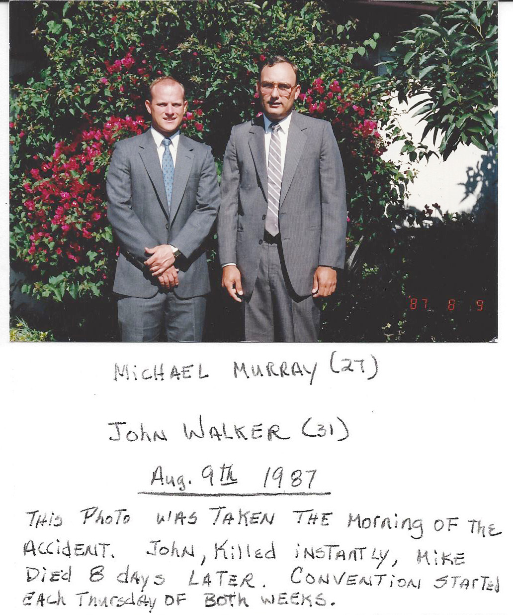 Michael Murray (27 yr) & John Walker (31 yr) were killed in an auto accident in California.