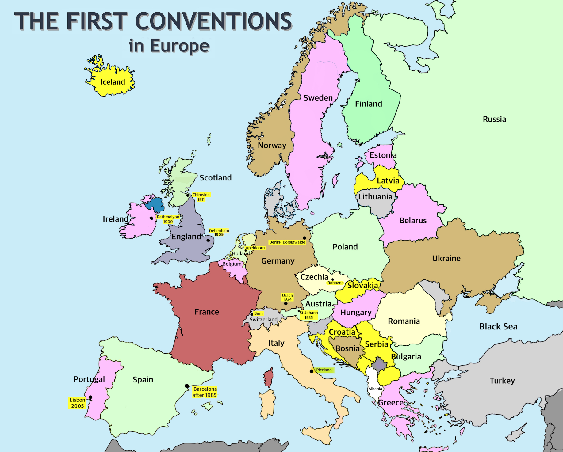Additional information regarding 'First Conventions in Europe' is welcomed.