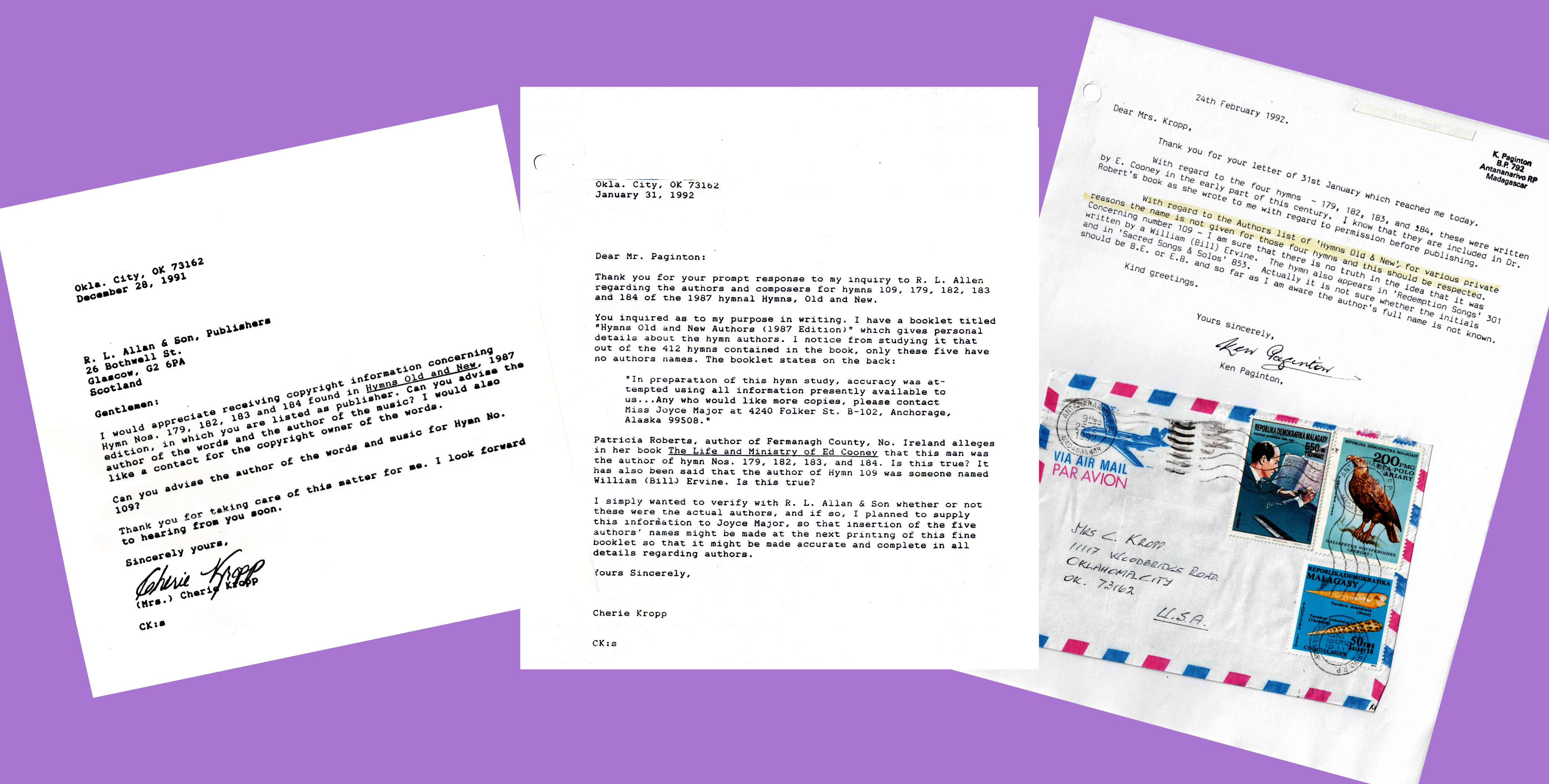Correspondence with Ken Paginton who handled copyright matters