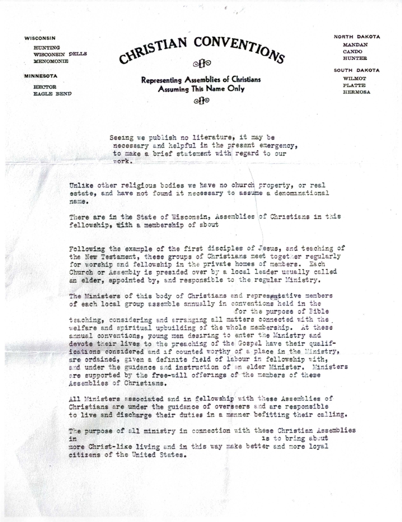 Christian Convention Letterhead for North Central States, known as “Jardine territory”